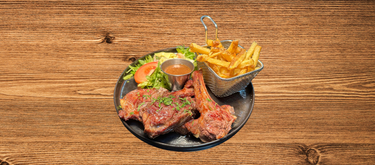 Origine : Europe, 200g Grillée au feu de bois,1 accompagnement et 1 sauce au choix.