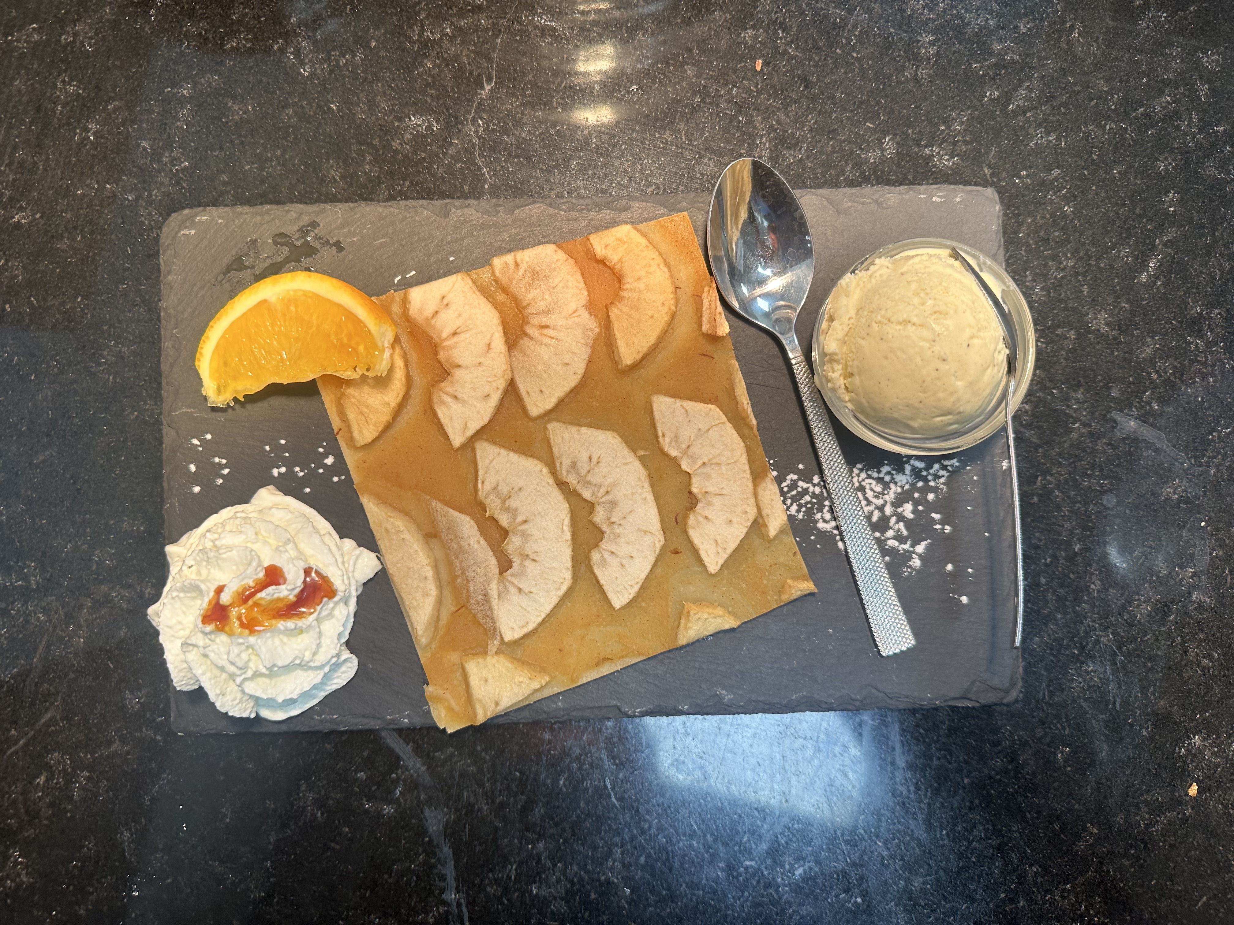 Ananas en rondelle avec une sauce vanille/citron vert maison.